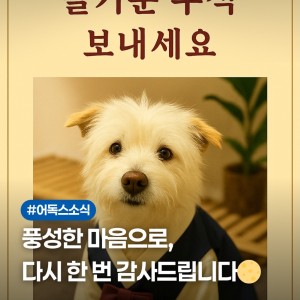 마음 가득 담아, 어독스 추석 인사올 한 해, 어독스의 임시보호자님, 입양자님, 후원자님께진심으로 감사드립니다. 여러분 한 분 한 분의 손길과 마음 덕분에작은 생명들이 두려움 속에서 벗어나따뜻한 보금자리를 찾을 수 있었습니다. 아이들에게는 …